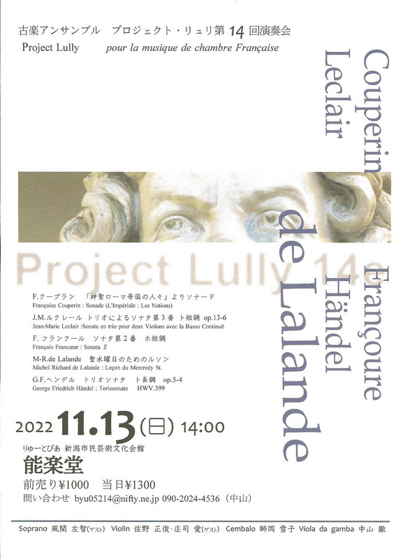 古楽アンサンブル プロジェクト・リュリ第14回演奏会