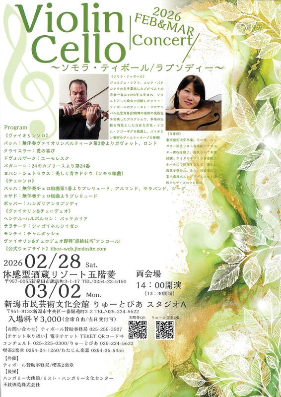 ヴァイオリン ソモラ・ティボール チェロ 白井彩