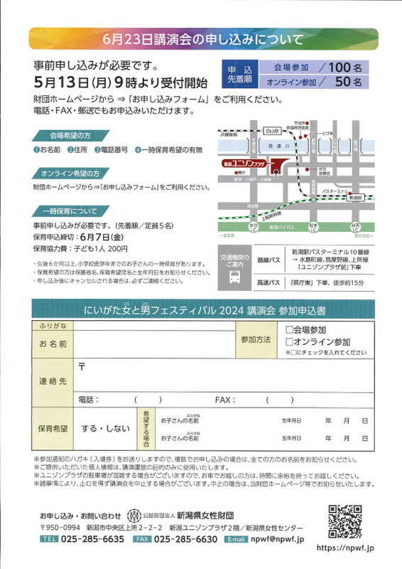 にいがた女と男フェスティバル講演会20242024.6/23(日)講師 西村宏堂会場:クロスパル新潟裏面あり 中央区, 無料 permalink こんな演奏会も。(終了したものもあります)関連したものがみつかりませんでした