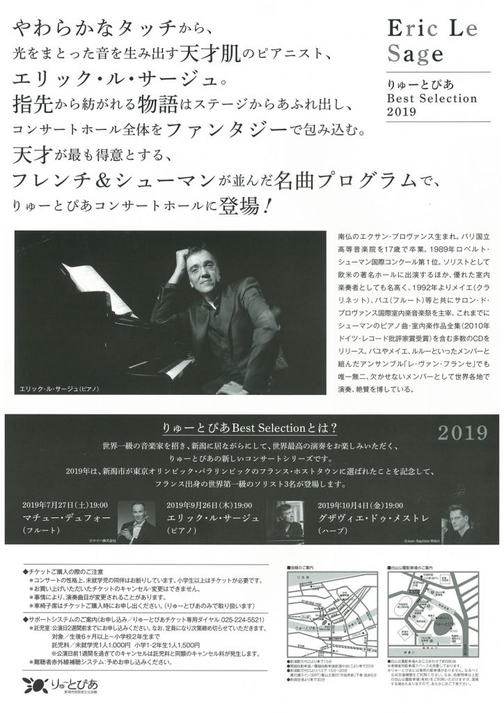 エリック・ル・サージュ リサイタル2019.9/26(木)会場:りゅーとぴあコンサートホール裏面あり。 中央区 permalink こんな演奏会も。(終了したものもあります)関連したものがみつかりませんでした
