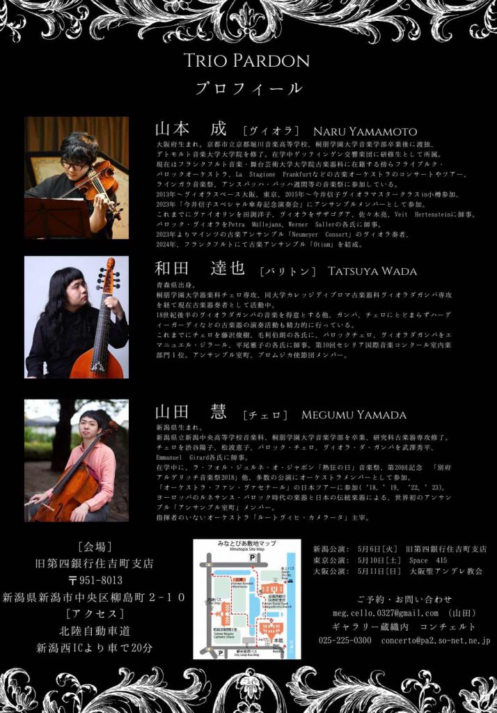 ハイドン バリトン三重奏曲コンサート2025.5/6(火)会場:旧第四銀行住吉町支店ご予約承っております。裏面あり 中央区 permalink こんな演奏会も。(終了したものもあります)関連したものがみつかりませんでした