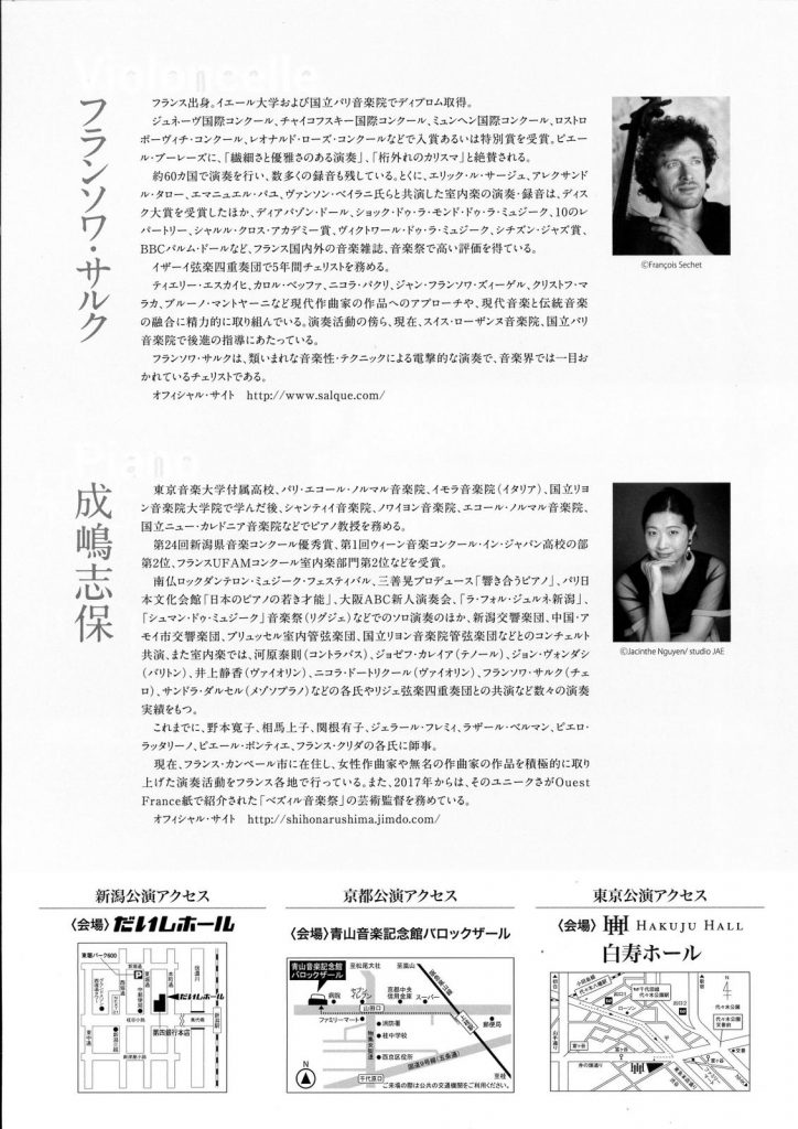 フランソワ・サルク&成嶋志保 チェロ&ピアノデュオリサイタル2019.10/23(水)会場:だいしホール裏面あり。 中央区, チケット取扱 permalink こんな演奏会も。(終了したものもあります)関連したものがみつかりませんでした