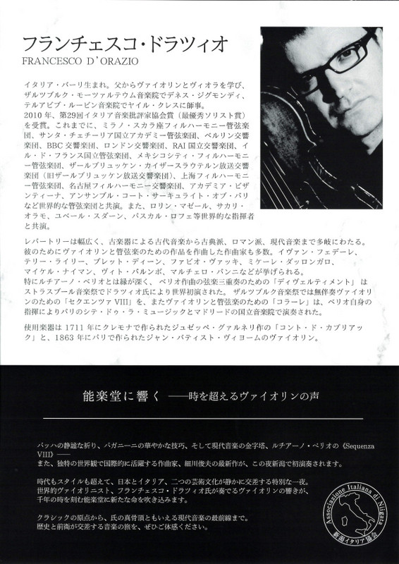 フランチェスコ・ドラツィオ 無伴奏ヴァイオリンリサイタル2025.9/9(火)会場:りゅーとぴあ能楽堂裏面あり 中央区, チケット取扱 permalink こんな演奏会も。(終了したものもあります)関連したものがみつかりませんでした
