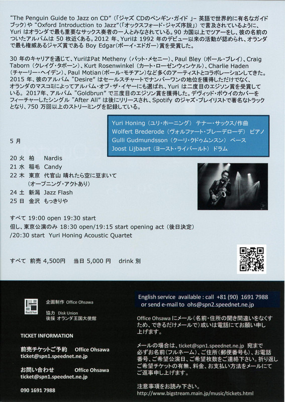 ユリ・ホーニング・アコースティック・カルテット2025.5/24(土)会場:ジャズフラッシュ裏面あり 中央区 permalink こんな演奏会も。(終了したものもあります)関連したものがみつかりませんでした