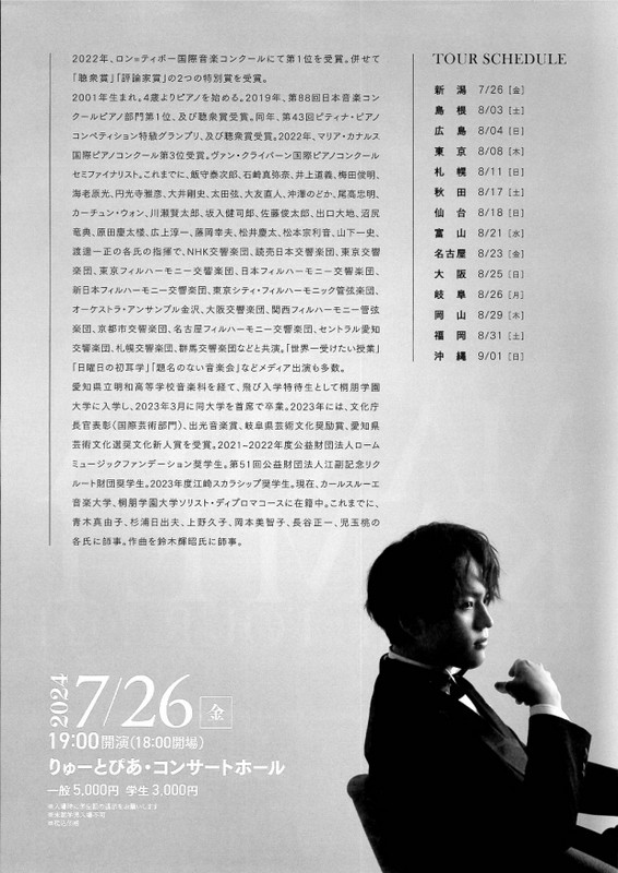 亀井聖矢 リサイタルツアー20242024.7/26(金)会場:りゅーとぴあコンサートホール裏面あり 中央区 permalink こんな演奏会も。(終了したものもあります)関連したものがみつかりませんでした