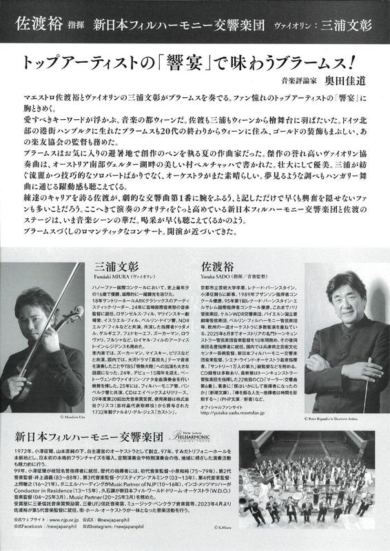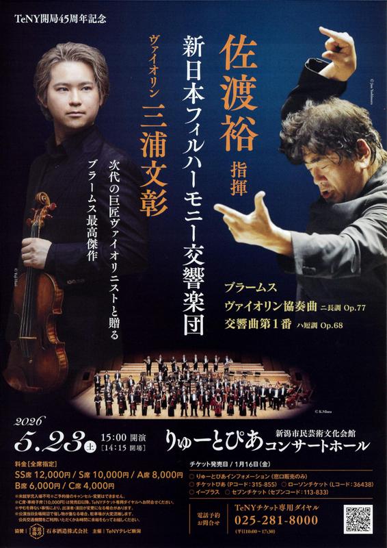 佐渡裕指揮 新日本フィルハーモニー交響楽団2026.5/23(土)会場:りゅーとぴあコンサートホール裏面あり 中央区 permalink こんな演奏会も。(終了したものもあります)関連したものがみつかりませんでした