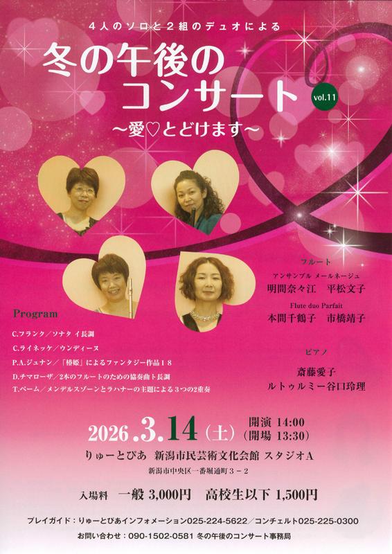 冬の午後のコンサート2026.3/14(土)会場:りゅーとぴあスタジオA裏面あり 中央区, チケット取扱 permalink こんな演奏会も。(終了したものもあります)関連したものがみつかりませんでした