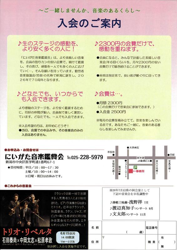 裏面あり。通常は会員のみ公演ですが、この公演のみ聴ける「お試し入会」もできます。