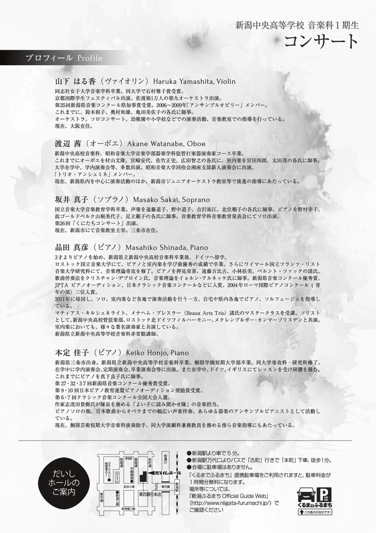 新潟中央高等学校音楽科1期生コンサート2015.4/5(日)出演:ヴァイオリン山下はる香 オーボエ渡辺茜 ソプラノ坂井真子 ピアノ品田真彦、本定佳子会場:だいしホール 14:00開演 中央区, チケット取扱 だいしホール, オーボエ, ソプラノ, ピアノ, ヴァイオリン, 品田真彦, 坂井真子, 山下はる香, 新潟中央高等学校, 本定佳子, 渡辺茜 permalink こんな演奏会も。(終了したものもあります)関連したものがみつかりませんでした