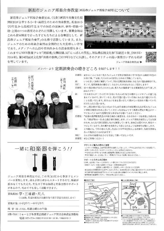 新潟市ジュニア邦楽合奏団 第28回定期演奏会2023.7/23(日)会場:りゅーとぴあコンサートホール裏面あり 中央区 permalink こんな演奏会も。(終了したものもあります)関連したものがみつかりませんでした