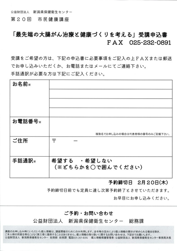 最先端の大腸がん治療と健康づくりを考える2025.3/1(土)会場:新潟日報メディアシップ 日報ホール事前予約制 中央区, 無料 permalink こんな演奏会も。(終了したものもあります)関連したものがみつかりませんでした