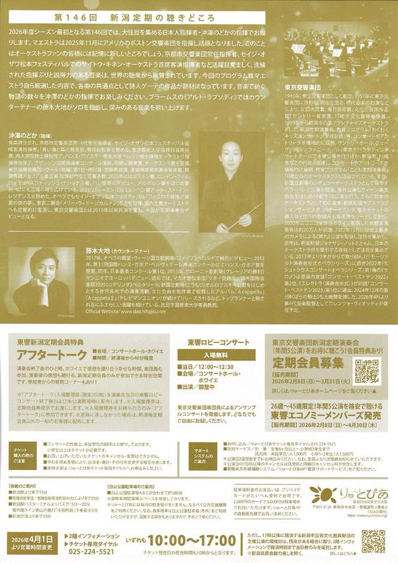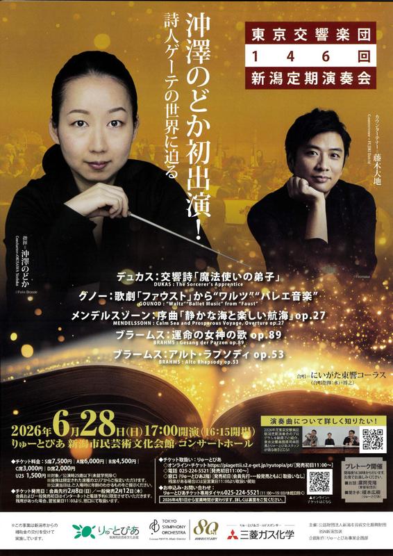 東京交響楽団 第146回新潟定期演奏会2026.6/28(日)会場:りゅーとぴあコンサートホール 中央区 permalink こんな演奏会も。(終了したものもあります)関連したものがみつかりませんでした