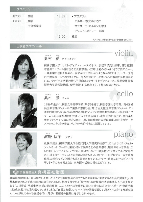 真柄ふれ愛 クリスマスコンサート2025.12/18(木)会場:新潟ユニゾンプラザ裏面あり 中央区, 無料 permalink こんな演奏会も。(終了したものもあります)関連したものがみつかりませんでした