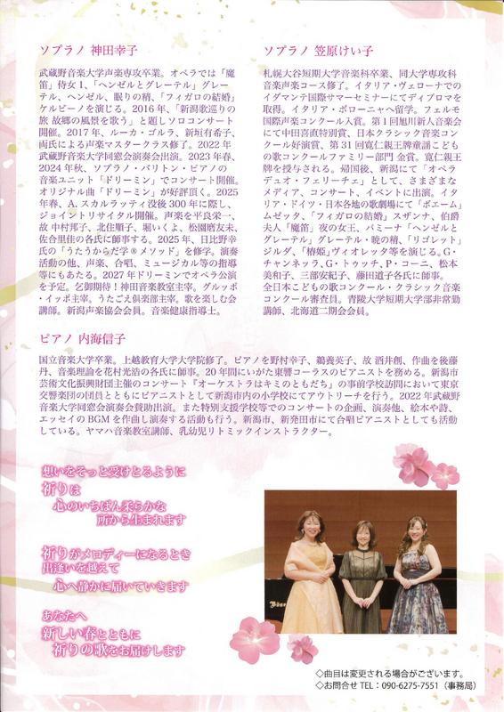 祈り 笠原けい子・神田幸子 ジョイントリサイタルvol.32026.1/25(日)会場:りゅーとぴあスタジオA裏面あり 中央区 permalink こんな演奏会も。(終了したものもあります)関連したものがみつかりませんでした