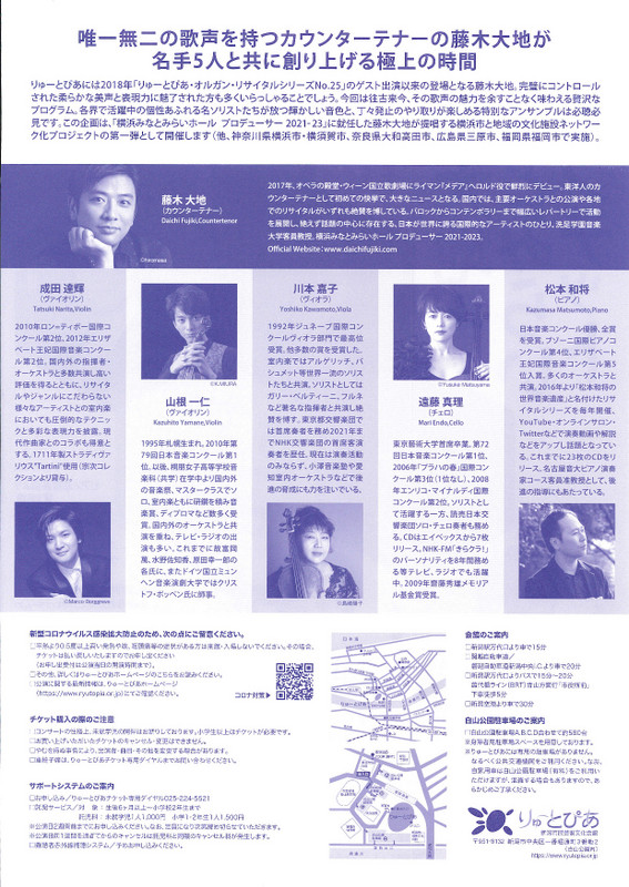 藤木大地&みなとみらいクインテット2023.5/3(水)会場:りゅーとぴあコンサートホール裏面あり 中央区 permalink こんな演奏会も。(終了したものもあります)関連したものがみつかりませんでした