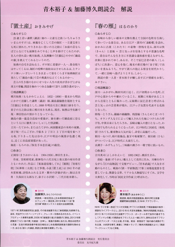 青木裕子&加藤博久 朗読会「春の宵」