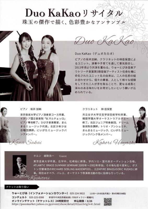 Duo KaKaoリサイタル2026.3/29(日)会場:りゅーとぴあスタジオA裏面あり。 中央区, チケット取扱 permalink こんな演奏会も。(終了したものもあります)関連したものがみつかりませんでした