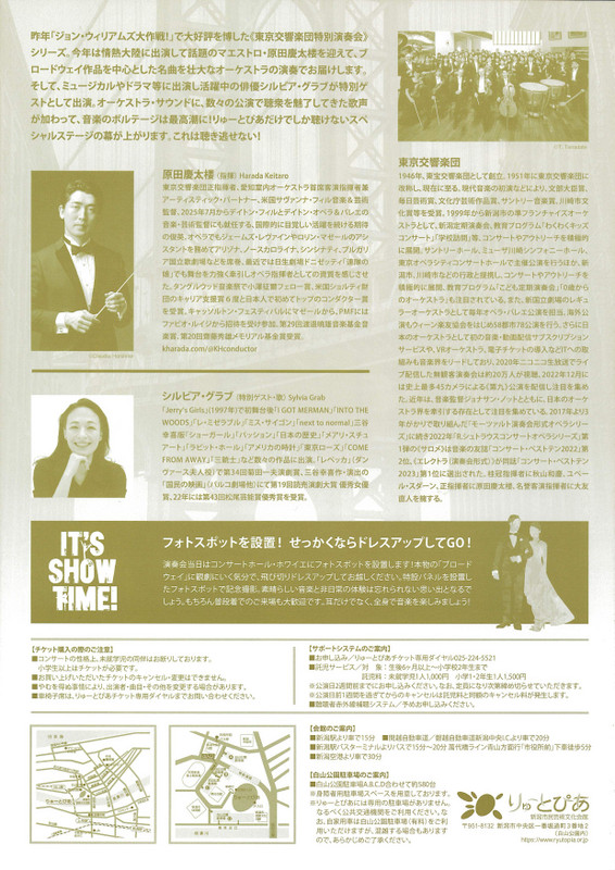 IT’S SHOUW TIME東京交響楽団特別演奏会Xブロードウェイ2025.6/29(日)会場:りゅーとぴあコンサートホール裏面あり 中央区 permalink こんな演奏会も。(終了したものもあります)関連したものがみつかりませんでした