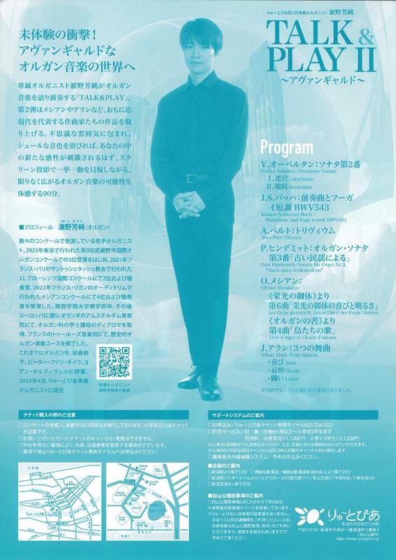 TALK&PLAYⅡ 濵野芳純2026.2/28(土)会場:りゅーとぴあコンサートホール裏面あり 中央区 permalink こんな演奏会も。(終了したものもあります)関連したものがみつかりませんでした