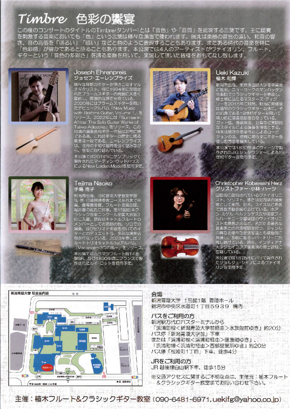Timbre 色彩の饗宴 4人のアーティストによるジョイントコンサート2023.7/22(土)会場:青陵ホール裏面あり 中央区, チケット取扱 permalink こんな演奏会も。(終了したものもあります)関連したものがみつかりませんでした