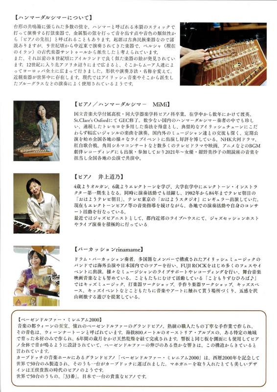 ハンマーダルシマートリオ ピアノの協演2026.4/12(日)会場:カーブドッチホール裏面あり 中央区以外 permalink こんな演奏会も。(終了したものもあります)関連したものがみつかりませんでした