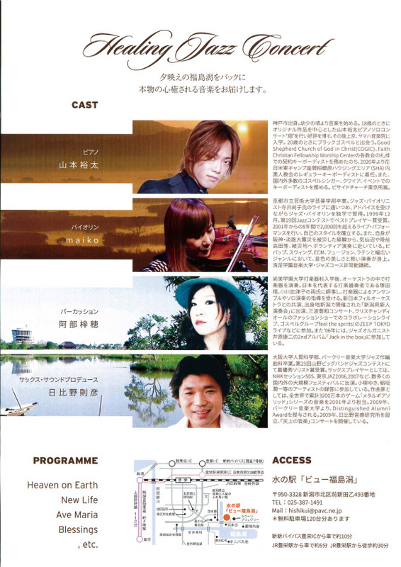 潟の音風景福島潟夕陽コンサートvol.282024.5/25(土)会場:ビュー福島潟 6階展望ホール裏面あり 中央区以外 permalink こんな演奏会も。(終了したものもあります)関連したものがみつかりませんでした