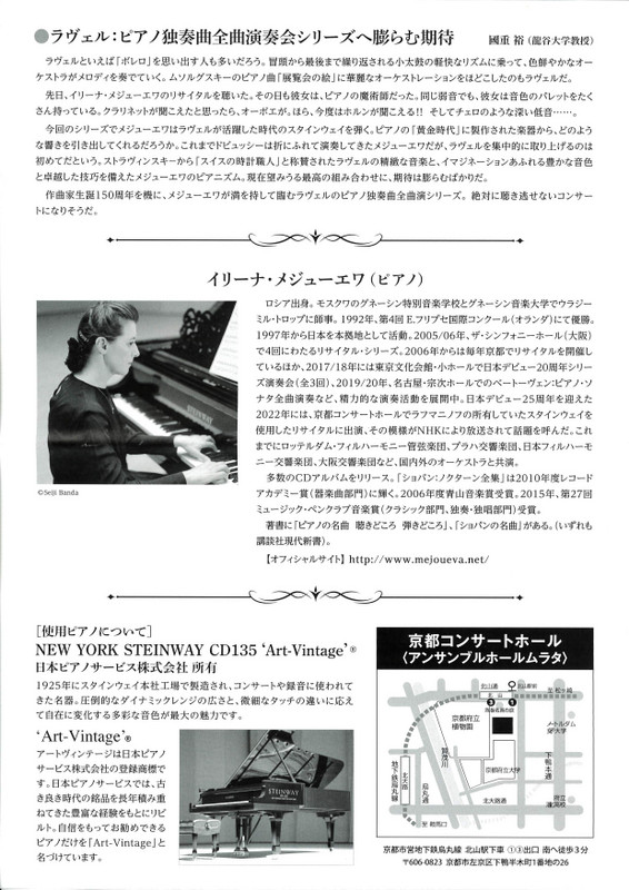 イリーナ・メジューエワ ピアノ・リサイタル20252025.6/27(金)会場:(京都府)京都コンサートホール裏面あり 県外 permalink こんな演奏会も。(終了したものもあります)関連したものがみつかりませんでした