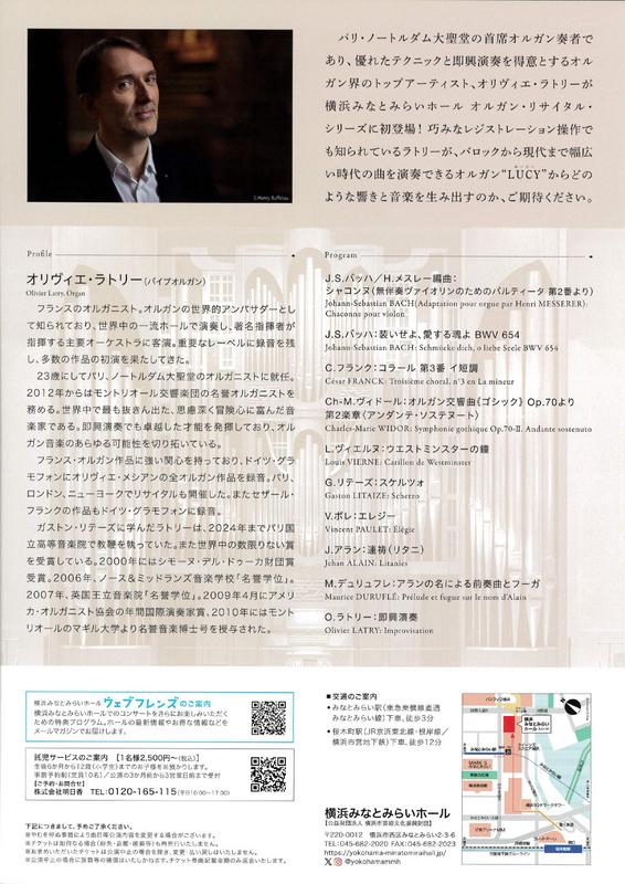 オリヴィエ・ラトリー オルガン・リサイタル2026.4/29(水)会場:(神奈川県)横浜みなとみらい大ホール裏面あり 県外 permalink こんな演奏会も。(終了したものもあります)関連したものがみつかりませんでした