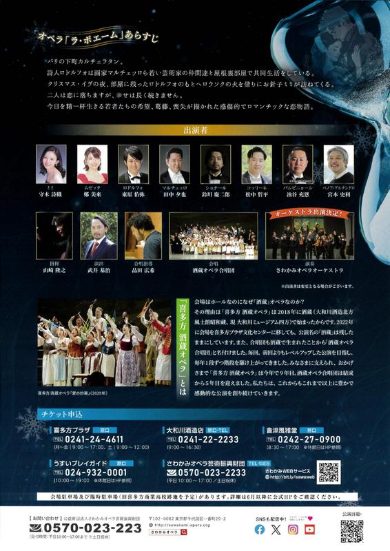 ラ・ボエーム 喜多方酒蔵オペラ2026.6/27(土)オーボエ大木雅人さん参加会場:(福島県)喜多方プラザ文化センター裏面あり 県外 permalink こんな演奏会も。(終了したものもあります)関連したものがみつかりませんでした