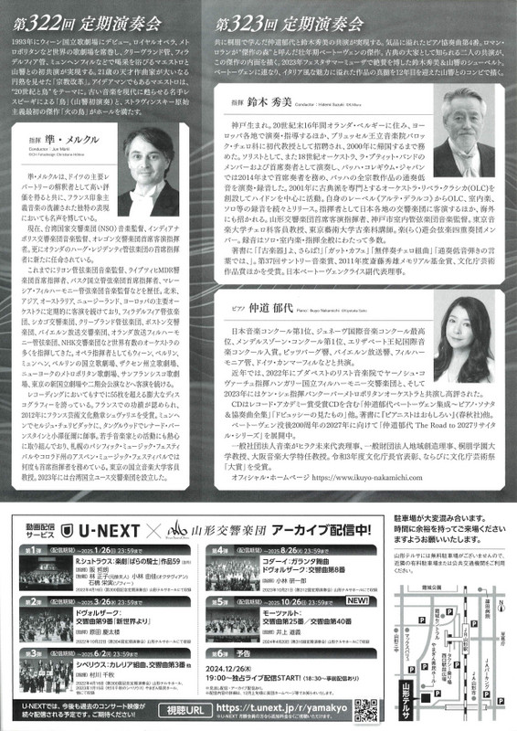 山形交響楽団 第322回定期演奏会2025.2/23(日)会場:(山形県)山形テルサホール裏面あり 県外 permalink こんな演奏会も。(終了したものもあります)関連したものがみつかりませんでした