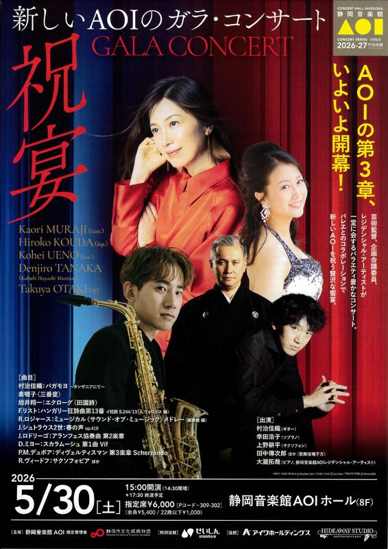祝宴 新しいAOIのガラ・コンサート2026.5/30(土)大瀧拓哉さん出演会場:(静岡県)静岡音楽館AOIホール裏面あり 県外 permalink こんな演奏会も。(終了したものもあります)関連したものがみつかりませんでした
