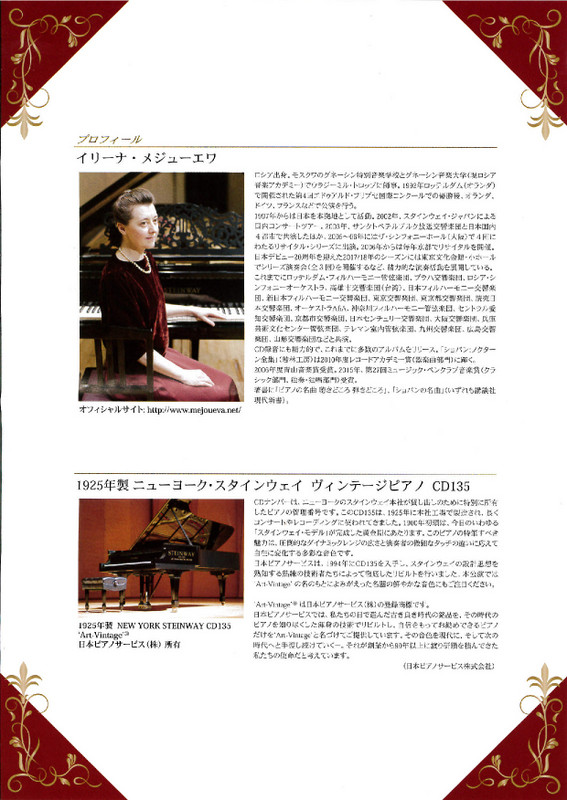 イリーナ・メジューエワ ピアノリサイタル2023.10/1(日)会場:(長野県)ホクト文化ホール裏面あり 県外 permalink こんな演奏会も。(終了したものもあります)関連したものがみつかりませんでした