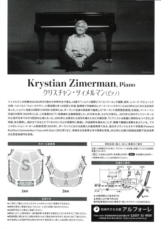クリスチャン・ツィメルマン ピアノ・リサイタル2025.11/8(土)会場:柏崎市文化会館アルフォーレ裏面あり 新潟市外 permalink こんな演奏会も。(終了したものもあります)関連したものがみつかりませんでした