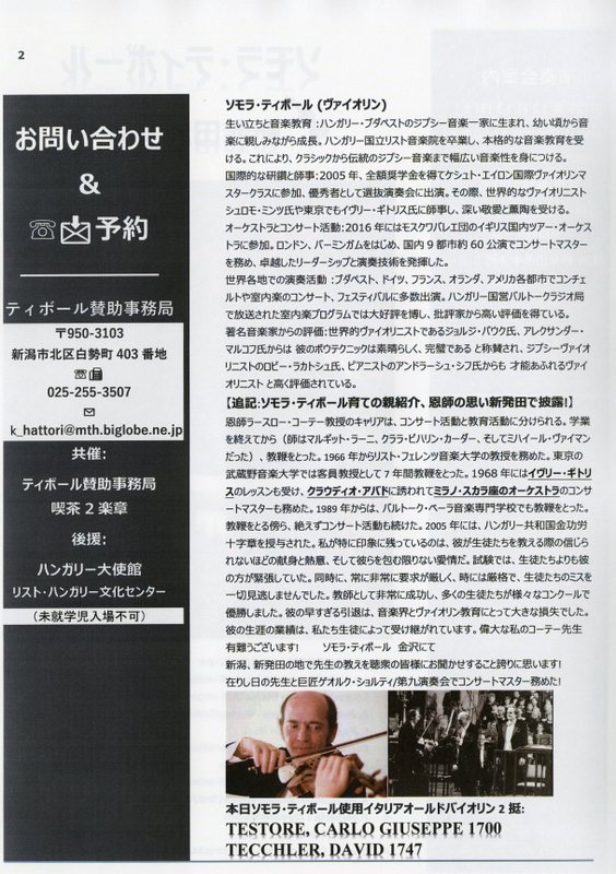 ソモラ・ティボール 新発田演奏会