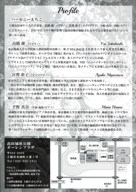 ハーモニーえちご ニューイヤーコンサート2025.2/1(土)会場:高田城址公園オーレンプラザホール裏面あり 新潟市外 permalink こんな演奏会も。(終了したものもあります)関連したものがみつかりませんでした