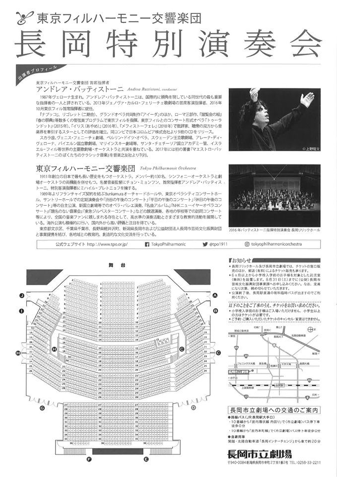 バッティストーニ&東京フィルハーモニー交響楽団 長岡特別演奏会2019.9/7(土)会場:長岡市立劇場裏面あり。 新潟市外 permalink こんな演奏会も。(終了したものもあります)関連したものがみつかりませんでした
