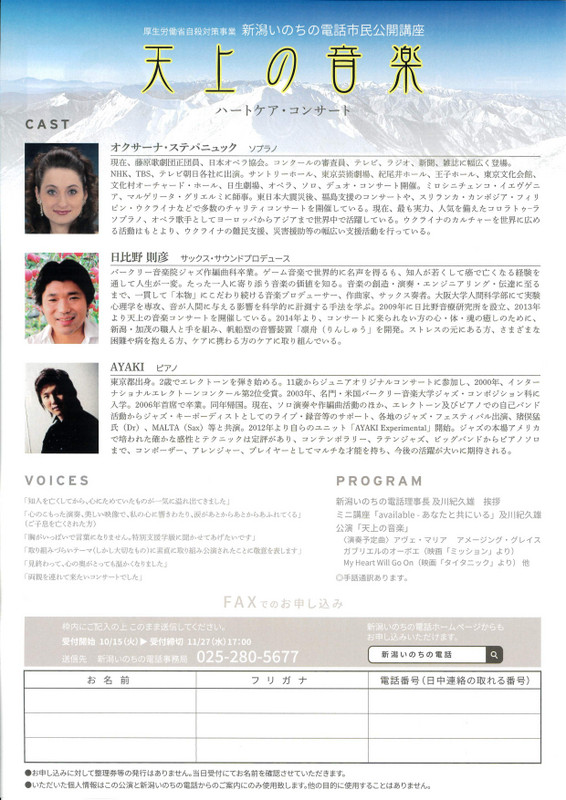 天上の音楽 ハートケアコンサート2024.12/1(日)裏面あり会場:新発田市生涯学習センター 新潟市外, 無料 permalink こんな演奏会も。(終了したものもあります)関連したものがみつかりませんでした