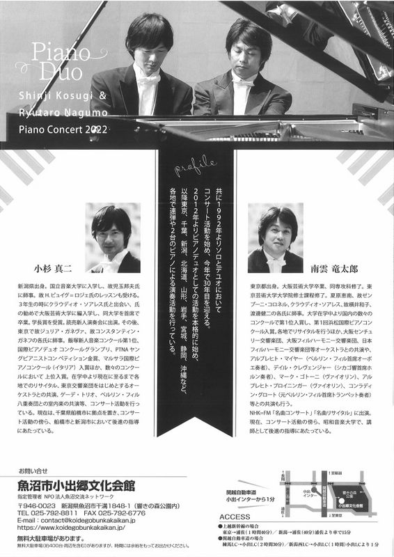 小杉真二&南雲竜太郎ピアノコンサート2022