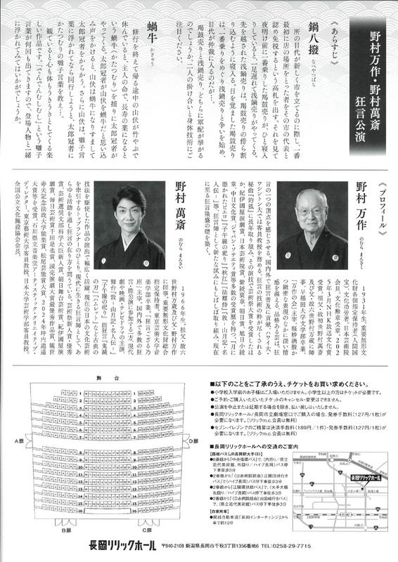 野村万作・野村萬斎 狂言公演2026.7/16(木)会場:長岡リリックホール・シアター裏面あり 新潟市外 permalink こんな演奏会も。(終了したものもあります)関連したものがみつかりませんでした