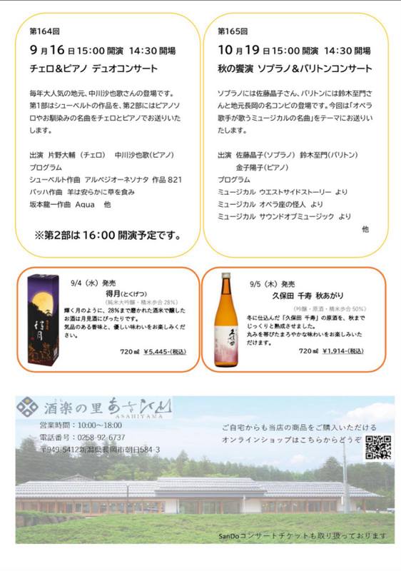 SanDoコンサートチェロ&ピアノ2024.9/21(土)チェロ片野大輔 ピアノ中川沙也歌会場:朝日酒造エントランスホール裏面あり 新潟市外 permalink こんな演奏会も。(終了したものもあります)関連したものがみつかりませんでした