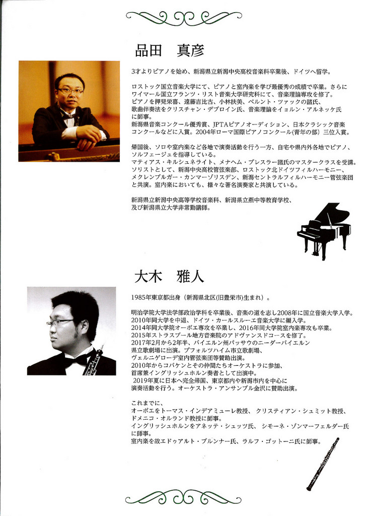 オーボエとピアノの60分コンサート 第1回2021.9/4(土)オーボエ 大木雅人 ピアノ 品田真彦会場:新潟市北区文化会館 練習室1こちらの公演は中止となりました。 裏面あり。 中央区以外, チケット取扱 permalink こんな演奏会も。(終了したものもあります)関連したものがみつかりませんでした